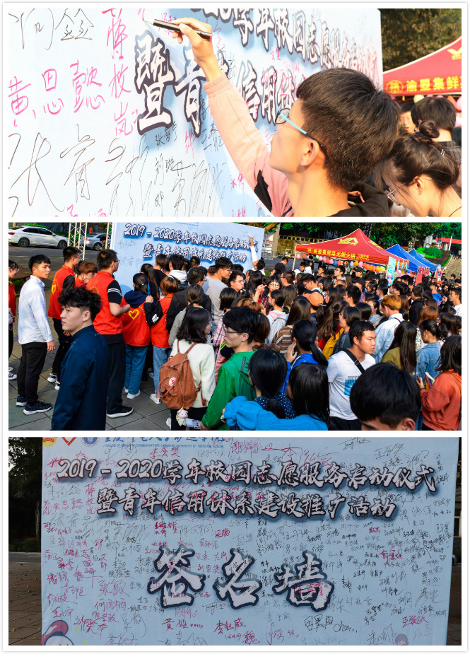 为倡导广大移通学子积极参与志愿服务活动,营造人人参与志愿的校园氛围,同时推进我校青年信用体系建设,强化青年诚信意识,10月30日16时,青年志愿者联合会联合大数据与软件学院、淬炼商学院、花果书院、北山书院在黄桷树广场举办2019-2020学年校园志愿服务启动仪式暨青年信用体系建设推广活动,全校共600余名师生参与本次活动。