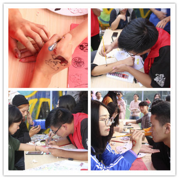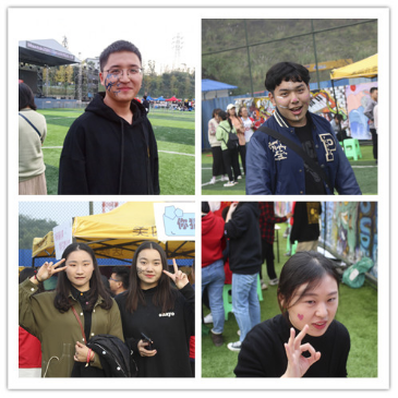 酒会专区有着不可或缺的各种美食、饮品、水果,让同学们在尽情感受音乐文化的同时享受着食物带来的惬意,纵然美食诱惑不可抵挡,但同学们还是排着队依次品尝。一旁的涂鸦区更是洋溢着青春气息,负责涂鸦区的志愿者们手拿画笔,眼神专注画着形态各异、栩栩如生的公益元素图案。随处可见脸上、手上画有各种各样图案的同学,洋溢着青春笑容。到场的同学们都玩得极其尽兴,这大概就是青春的专属色彩。
