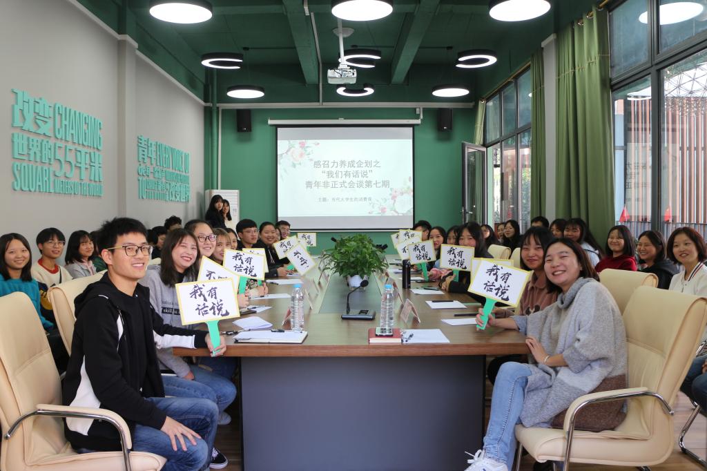 会谈最后,熊斌老师和曹玉姣老师都对同学们的发言做了针对性的点评,同时也给同学们提出了一些关于“如何树立正确的消费观”的建议。熊斌老师在他的点评和意见中说道:“作为一名辅导员,为同学们有这种理性消费的意识感到十分欣慰,尤其是贺芳芳同学的观点我十分的赞同。理性消费才是王道,所以同学们一定要理智的对待自己的消费欲望,切勿进入冲动消费的误区,还有最最重要的一点就是请同学们切记不要网贷!”熊斌老师除了对同学们发言做了点评外,也对花果书院“我们有话说-青年非正式会谈”表示十分地支持,他说:“这种机会其实是十分地难得,同学们更应该珍惜这种能够表达自己观点的机会。”是的,正如花果书院大型会议室墙上的字样所说:“青年的每一次发声都有可能改变世界!”