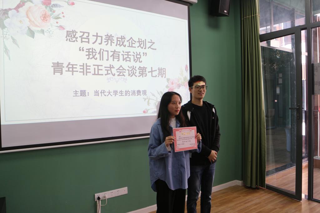 “我们有话说”不仅是一个让同学相互交流、相互学习平台,更是一个培养学生们的感召力,锻炼学生口才与表达能力,让学生从敢说到会说,勇于对世界发声的平台。在本次的会谈中尽管大家感到意犹未尽,但是时间已悄悄过去。相信通过本次精彩的分享与交流后,同学们在如何树立正确消费观的问题上都有了更多的认识,也希望同学们能够合理控制自己的消费欲,认清校园贷的极度危害性,养成理性消费、健康消费的良好习惯和理念。