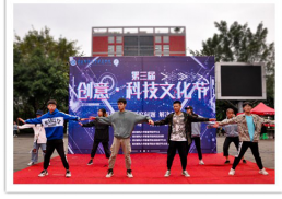 30【创意·科技文化节】10月24日,由学生会科技活动部组织开展的第三届创意·科技文化节开幕式在黄桷树广场成功举行。机器人舞蹈、创意纸桥、创意书法、创意厨艺、环保服装设计等一系列活动有序开展,吸引了大量同学参加。全面塑造大学生的求真精神和综合素质能力。