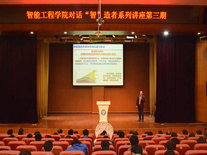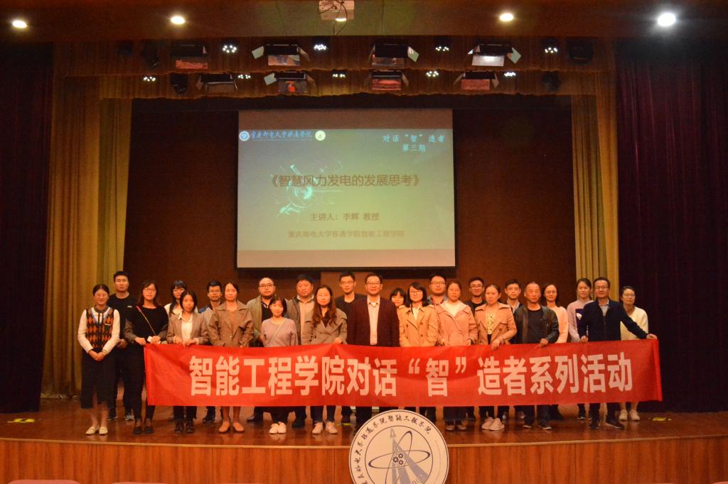 为搭建师生交流平台,促进师生对话与交流,智能工程学院结合专业集中式书院的特色,开展对话“智”造者系列活动。活动以新能源技术革命带来的机遇与挑战为背景,以风力发电为例,分析我国风电并网运行的现状和问题,并从智能电网发展角度出发,探讨智慧风电发展的需求。10月31日晚,重庆大学教授、博士生导师、教育部新世纪优秀人才李辉教授在我校下里巴人剧场开展了一次以“智慧风力发电的发展思考”为主题的精彩讲座。智能工程学院副院长党晓圆、李洁,以及教师学生代表共计140余人聆听了讲座分享。