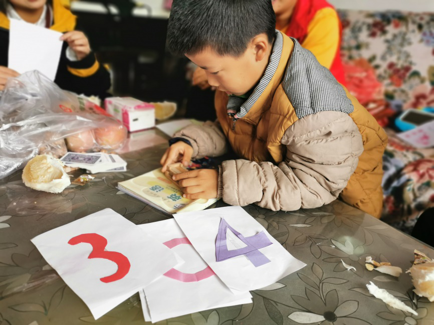 “情暖贫困家”的志愿者们在活动中询问了陈熙最近的学习情况以及学习成果,仔细检查了陈熙的周末作业并对其进行了更正与讲解。完成作业后,志愿者们和陈熙小朋友用扑克牌合作了一个小游戏—“三八二十四”,动用小脑瓜,用到了陈熙正在学习的加减乘除,既能娱乐又能促进学习,一举两得。