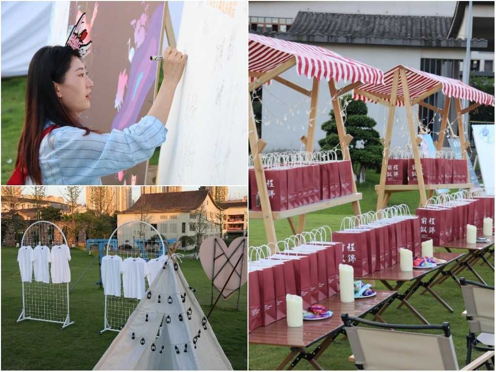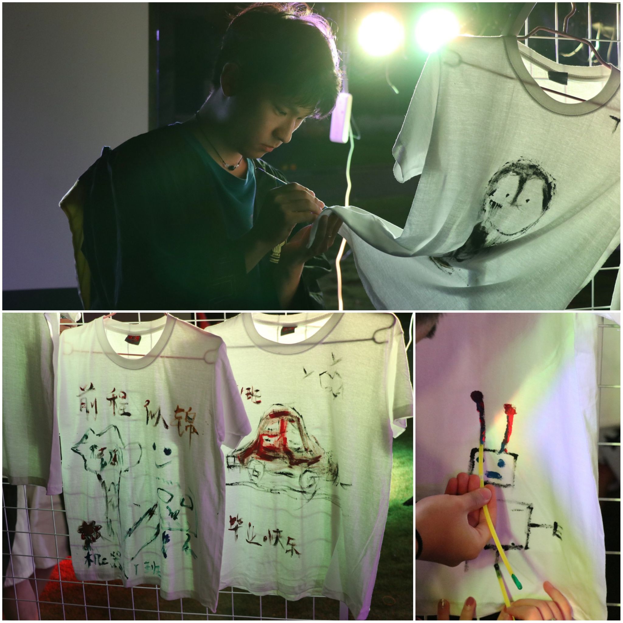 下一个环节,大家以班级为单位进行绘图大PK,每个班派出一支队伍上台画白T,将未来设想、毕业思绪、班级特色展现出来,活动现场充满了欢声笑语,热闹非凡,同学们纷纷展现出了自己的绘画实力。辅导员老师们最后评选出第一名,并进入抽奖环节,获奖同学抽到了“班委现场拥抱”、“辅导员谈心谈话”、“超级零食包”等神秘礼物,开心不已。