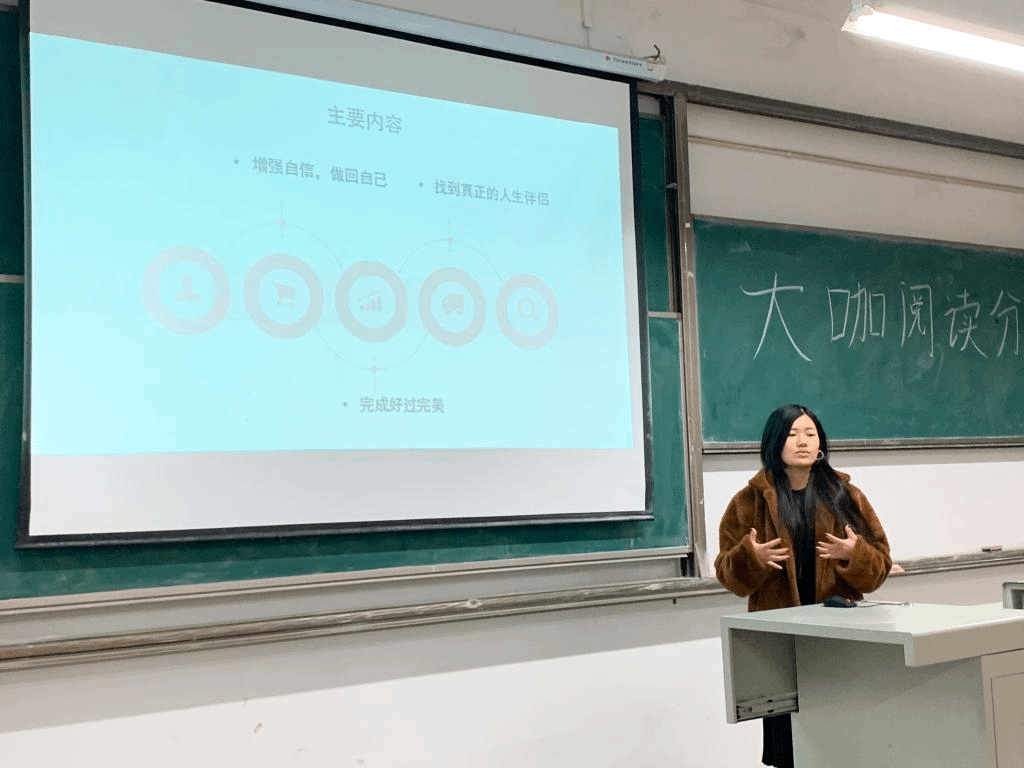 首先是张彬同学分享了《向前一步》。她梳理了作者生平、主要内容、作者的杰出事件及其杰出的缘由、并由书及己,以书反思自己。张彬同学提出问题:现代女性到底能否做到工作与家庭兼顾?同学们纷纷讨论,李昊鸿同学作为代表发言认为女性是可以兼顾的。如书所言,“很多时候,是你自己退缩的,而不是被人挤出去。”女性事业的成功即意味着家庭角色的失职,更多自我的定位也常常使心力交瘁。张彬同学分享妈妈的励志故事,也鼓励在座女生打开心锁,向前一步。这一步,不仅是一种新的姿态,更是一种别样人生。从现在开始,不徘徊不犹豫,不躲闪不后悔,大胆追求自己的梦想,演好自己生命中角色。