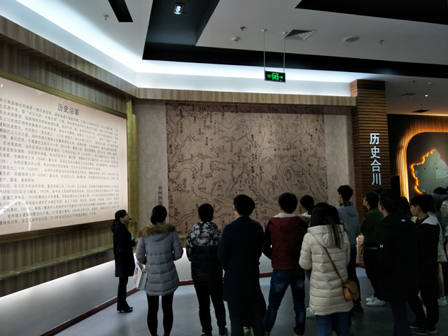 下午2时许,同学们抵达合川规划展览馆,在区规划展览馆沈科长的事先安排下,讲解员刘女士热情地接待了同学们,同学们来不及掩饰自己对合川的浓厚兴趣,行进中虚心向讲解员求教。在一层的展厅场馆同学们“看到”了合川的过去、现在、未来;二层更多体现地是将合川打造成为新型工业城市、幸福宜居家园、旅游休闲胜地的思路,并用照片墙的方式从商业、农业、工业、科教、文体、卫生、交通以及各大镇街等方面展示了现在合川的现状和恢宏的未来规划。
