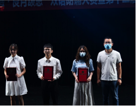 本次文化闭幕式也是双语朗诵比赛的现场,经过了层层选拔站到现场的英语组、德语组的选手们早已蓄势待发,在精彩的开场舞后选手们相继上台向台下的评委以及观众展现自己的朗心独见,对于每一个单词的理解对于每一句段落的抒发都是选手自己的心中所向;走过往昔,奋斗的汗水刚刚拭去,回首赛程胜利的笑容正在蔓延,高歌这一路荣耀感动展望明朝,在比赛间隙颁发“有话对你说”双语视频征集大赛和“感恩有你·一路同行”双语书法大赛的获奖得主,他们的视频和书法从众多作品中脱颖而出,是当之无愧的得奖获得者,他们分别是田小勇、黄婷和指导老师向觅,此外还有“声声悦耳,音质非凡”双语配音大赛和“中国文化·中国故事”双语征文比赛的奖项得主,他们分别是熊川渝、贾世婷和指导老师秦艳。