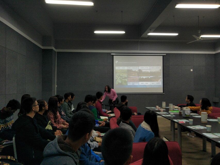 近两个小时的交流学习中,我校农耕协会会长,来自2015级通信工程专业的赵汪盛同学就我校农耕协会成立至今两年的发展情况、运行模式和经验总结通过PPT展示、农场宣传视频播放、宣传期刊展示等环节与应用职业技术学院的同学代表们进行交流分享。赵汪盛会长提出,协会的发展离不开同学们的积极参与,同时也应该利用自身特点,重视宣传,搭建品牌活动平台,提高知名度,扩大影响力,才能吸引更多成员的加入。