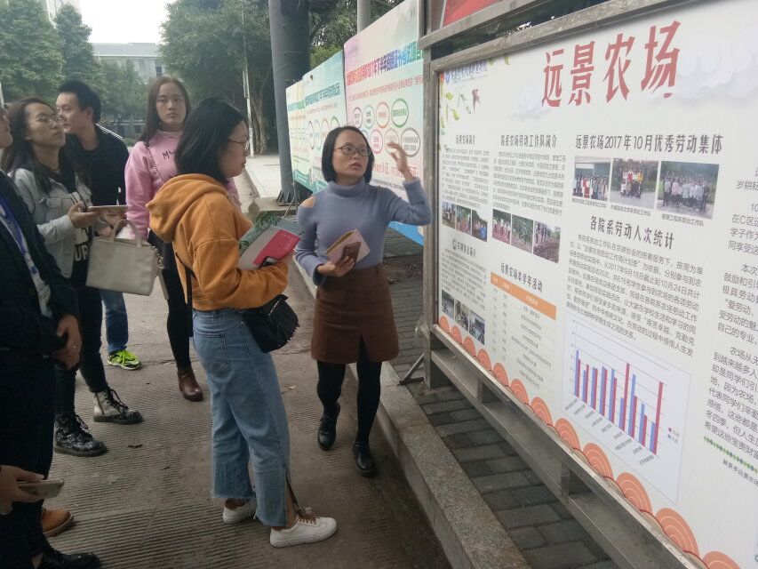 (两校社联主席及社团相关学生干部参观我校远景农场宣传展板)