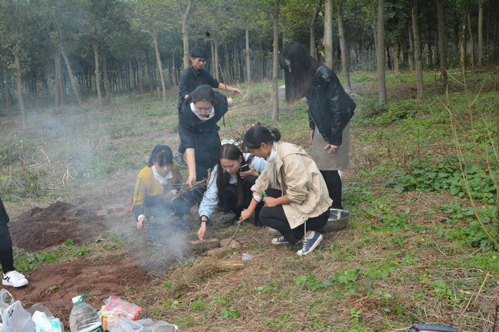 三人行,必有吾师,学习是没有界限的 。书本的知识易学,生活的知识难学,一切来自于实践,实践是检验真理的唯一标准。期间,来到烧火做饭环节,按照最初的想法先挖了一个通风道,再用可燃冰把火点起来。但是成员们认为的必然居然败给了事件的偶然,由于通风道和风向背离了,所以滚起来的浓烟很快把成员们呛的泪涕横流。当地的老乡李叔叔说:“你们看那湖面上波纹流动的方向就是现在风吹动的方向,所以你们这个通风道的方向挖错了”。成员们展示了各自的精湛厨艺,在简陋的环境下,烹煮了红烧肉、咖喱鸡肉、火锅等美食,享用自己的劳动成果,让参与的同学大呼过瘾。同学们还仔细向李叔叔访问了这里的历史背景和特色资源,相谈甚欢、氛围融洽、收获颇丰。