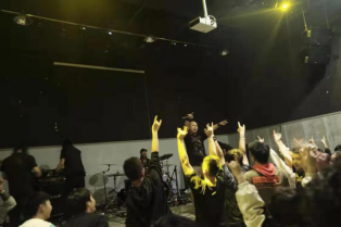 HeavenLiveHouse里,是我校的凌晨三点半和北极星乐队以及来自云南的寄生前夜乐队在纵情歌唱。流行、民谣、重金属接连登场,《开到茶蘼》《证据》《阳光宅男》等耳熟能详的歌曲依次唱响。乐手们跳下舞台和观众围成一圈“开火车”,重金属的鼓声充斥双耳,全场热闹非凡。