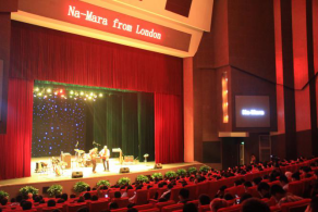 同时在缤果大剧院登场的,是英国伦敦的‘Na-Mara’乐队和来自马来西亚的LOKO独立摇滚乐队。在音乐的世界里没有国界,不分语言,‘Na-Mara’乐队清新淳朴的乡音民谣仿佛静静流淌的小河,同学们闭上眼睛,沉浸在如老电影般经典的英式乐声久久难以自拔。