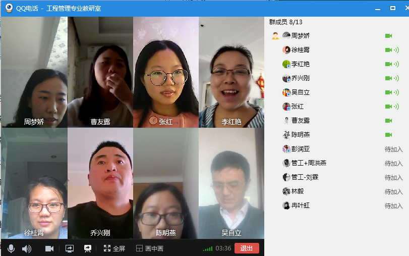 数字经济与信息管理学院工程管理教研室全体教师于4月15日下午16时齐聚云端,围绕“新专业申报调研报告修改”这一主题展开深入的讨论,会议由工程管理教研室主周梦娇副教授主持,教研室全体教师都积极提出了自己的意见。