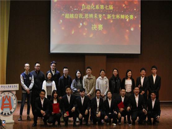 自动化系第七届新生杯辩论赛伴着十一月的“超越”而来,拓展思维反应,锻炼语言能力。唇枪舌剑,刀光剑影。辩论是没有硝烟的战争,历时两个月的晋级赛,轨道交通信号与控制5班与电气工程及其自动化8班在11月12日19:00站在了下里巴人的舞台上,争夺新生杯辩论赛冠军,继续超越自我。自动化系学生办公室主任李巧老师,自动化系辅导员张颖超老师、粟丹老师、刘桃老师出席了本次辩论赛。