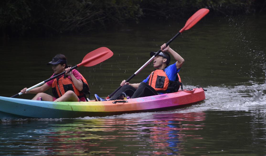 (3.5公里的皮划艇项目中,队员们克服心理压力,无人落水,完成考验)
