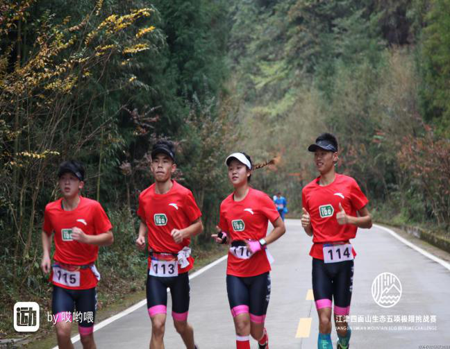 11月11日上午9点整,鸣枪发号后,“2017重庆江津四面山生态五项极限挑战赛”在四面山游客中心正式开赛。虽然当天气温低下,但丝毫不影响运动健儿们的激情,他们向前奔跑的身影“燃烧”着在场所有观众躁动的心。运动健儿们始终铭记指导老师的赛前分析“因是团体做战,成绩取四名队员中最后一名抵达终点时的成绩,所以我们队伍必须以团队出现。”比赛一开始,运动健儿们就如火箭一般迅速有序的冲出起跑线,找到自己的队伍,以团队形式奋勇并进。队员们都怀揣一颗求知、求索、不服输的心,坚信团队的力量是伟大的,只要做到了互帮互助,再大的困难也会迎刃而解。在整个比赛中不抛弃、不放弃任何一名队友,是所有参赛队员的比赛宗旨。自行车赛道骑不上去的坡,男生下车推女生车跑,或者在女生背后推行;因为身体素质原因,女生拖慢了团队进程,其他三位男生队员也一直在旁边给女生鼓励。在四面山的新鲜空气中,队员们怀揣奋进的心,身披“团结”的披风,一路向终点奔去。