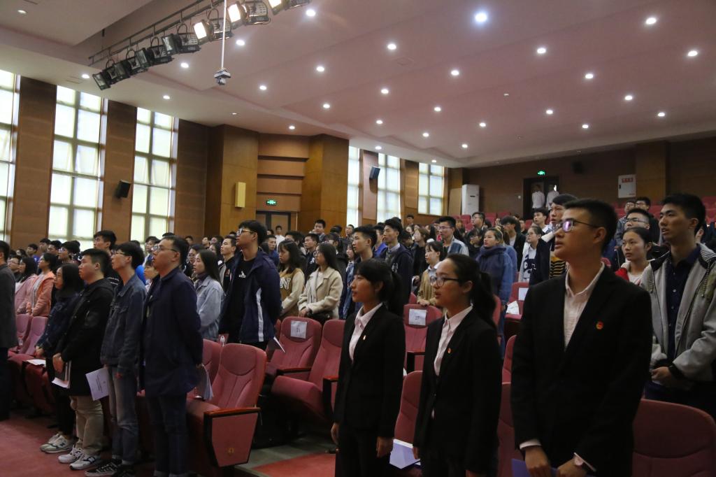 (团委书记李文豹宣读第七期完满教育学生骨干培养计划班级成立通知)