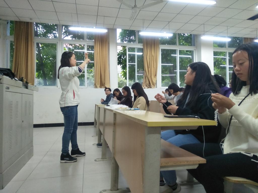 (社长向社员们介绍穿线技巧)