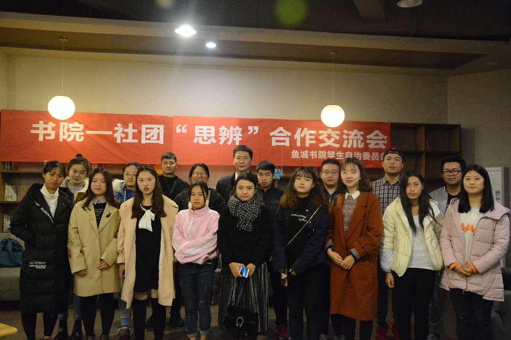 冬至临近,渐入寒冬。为进一步凝聚工作共识、汇聚智慧力量,加强书院与社团交流与合作,助力鱼城书院“思辨空间”培育,进而带给学生丰富的体验,11月24日下午4:00,在行政楼C栋咖啡厅举行了“社团进书院”的合作交流会,非物质文化遗产研究会、茶学社、演讲与辩论协会、模拟联合国协会、电影协会、读书协会、英语社、戏剧社八个社团社长、副社长应邀出席交流会。鱼城书院发展导师白金龙参加本次交流会,并与各位社长、学生干部展开深入交流与探讨。