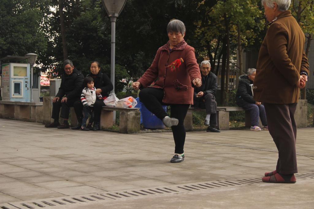 “哒、哒、哒…”熟悉的踢毽子的声音在场上不断回响,大人、孩子和老人都沉浸在踢毽子的欢乐中,在教小朋友踢毽子时,仿佛又回到了自己的童年时光。看着大家打成一片互相比赛的场景,或许,这就是“百团大战”进社区的意义之一吧,科技的不断发展,我们的生活轨迹不断被网络取代,让越来越多的人足不出户,与冰冷的电子屏幕朝夕相伴。我还注意到旁边一位坐在旁边的老人,默默注视着大家踢毽子的方向,眼里带着一丝欣喜,或许,老人眼中,场景似曾相识。