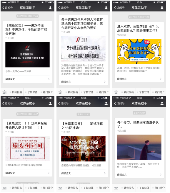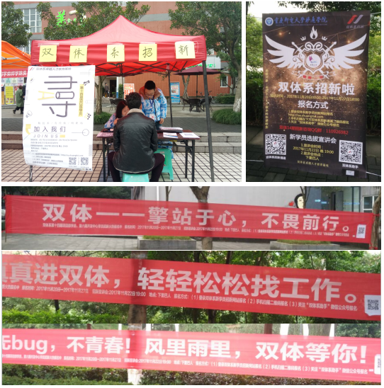 为了更好地让全院师生了解双体系,同时积极参与新学员的选拔,此次招新采用了传统宣传加新媒体宣传双模式,认识双体系变得更加直接和快捷,既不失庄重又符合90后的个性特点。特别是新媒体宣传,微信平台的良好体验性和互动性使双体系的形象进一步走进同学们心中。