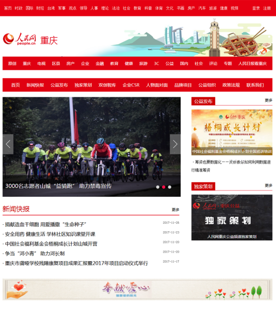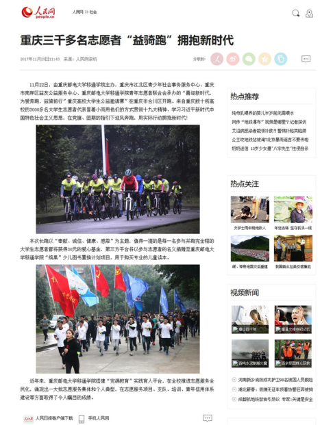 (人民网重庆头版头条报道我校“益骑行”志愿服务活动)