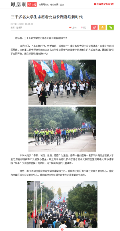 (凤凰网滚动新闻报道我校“益骑行”志愿服务活动)