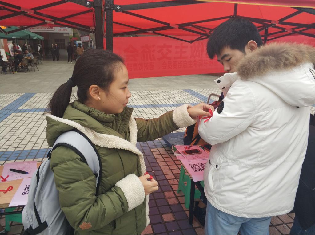清晨,廊桥的两个宣传点早早地支了起来,廊桥的小伙伴们热情地等待着大家的到来,这不仅仅是一项活动,这也是一份爱心。陆陆续续地两个宣传点咨询的同学都开始汇集了起来,廊桥的小伙伴们也非常热心地给大家散发制作好的艾滋病宣传单,讲解艾滋病的一些小知识,当然还不忘给他们系上象征关爱艾滋病的红丝带,还有些同学在“世界艾滋病日”的宣传横幅上郑重地签上自己的名字,表示自己自愿加入宣传艾滋病行动的行列。