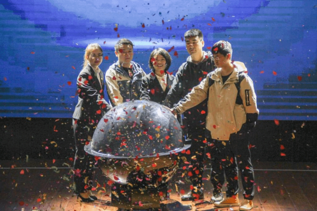 随后,校团委副书记谢银平、校团委APP负责老师蔡星宇、花果书院APP负责老师张天赐、校学生会主席、完满教育APP(悠学派)学生运营团队负责人陈星月以及姚佳伟同学共同在倒计时后请共同将手掌放到启动球上,宣布完满教育APP(悠学派)上线正式使用。