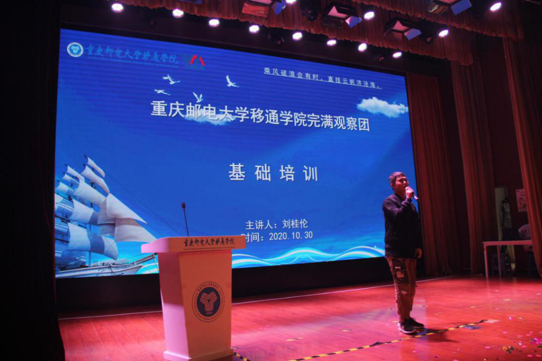 重庆邮电大学移通学院完满教育APP(悠学派)发布暨2020-2021学年完满观察团启动仪式结束后,校团委指导老师刘桂伦2020-2021学年校、院观察团全体成员进行了基础培训。