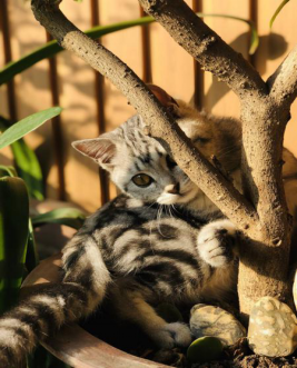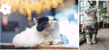三角构图:画面上主要对象(宠物猫猫)与景别分为主次,并形成三角关系。三角形是个十分稳定却又不会无聊的结构。