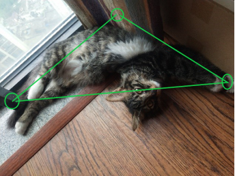 俯拍能够体现出猫姿态的全貌。但有时候顶拍(俯拍的一种,镜头与物体垂直)也只能够体现出对象的单一性。