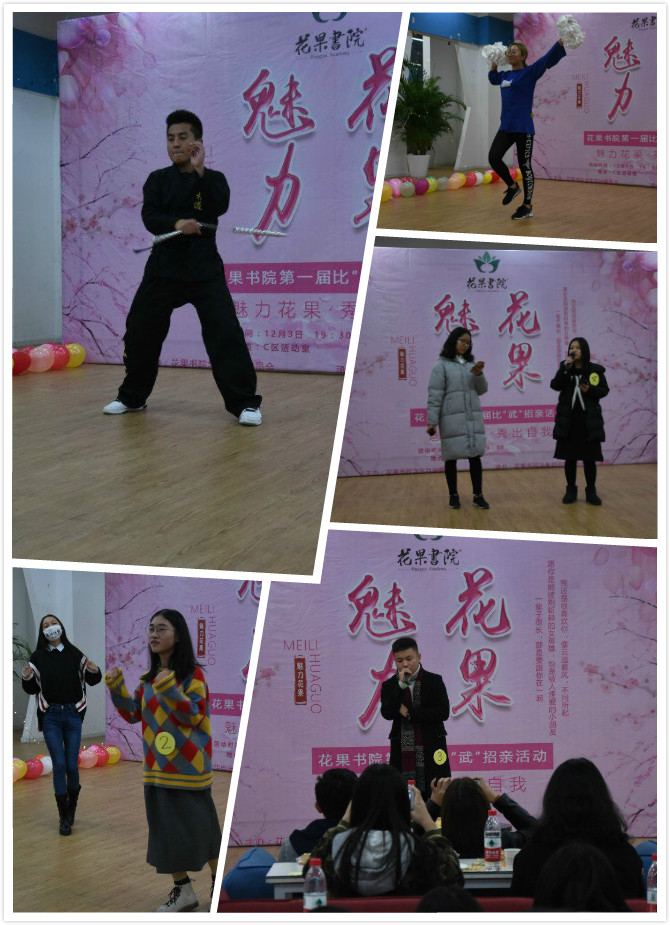 每个人都有自己的生活,但生活从不只是一个人,作为群居动物,展示自我,融入集体是每个人人生中不可缺少的过程。为了体现移通学子与众不同的个性风采,2017年12月3日晚上19时30分,花果书院学生自治委员会在学校C区活动室举办了“魅力花果·秀出自我”之花果书院第一届比“武”招亲,为广大学子提供一个交朋结友、施展才艺的平台。
