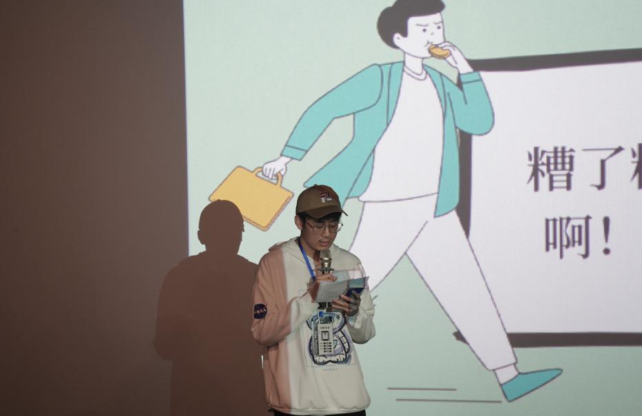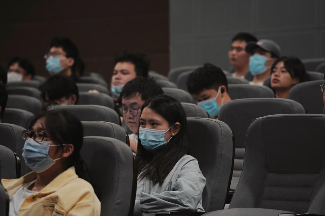 王社长对社员积分制度进行解析,电影协会今年创新推出了红、黑卡的福利,参与影协各项活动的同学,将会获得相应积分奖励,累计一定积分后,可获得影协盲盒大礼包。活动现场,社长谢丹阳和副社长刘力铭都从不同角度谈了自己从大一加入影协,到今天成为影协社长的一些难忘经历。