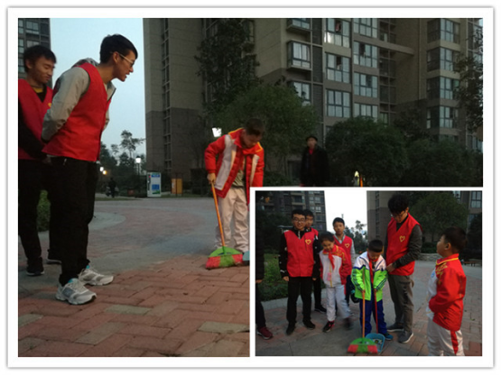 2017年12月4日的“太阳花课堂”显得与往常不太一样,孩子们不再是坐在教室里做作业,而是在社区内成为了一名家园“美容师”。他们手拿着扫把,朝着地面扫动,一下又一下,如此反复。在这严寒的天气里,他们没有任何的抱怨;在这如此单调重复的动作中,他们没有任何的不耐烦;在这特殊的教育“课堂”之中,孩子们有着非常优秀的表现。