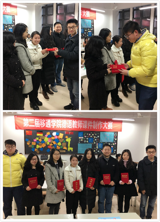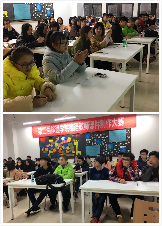 为体现公平公正,本次评选采用盲选及匿名打分的形式,各位评委不知道哪个作品出自哪位老师。参赛的各位老师根据德语学科特点和教学需要,本着提高学生的学习兴趣和提高课堂教学效率的原则,以教学内容和基本素材为基础,独立使用PowerPoint等各种课件制作工具制作出内容充实、图文并茂、形象直观的教学课件,并合理运用多媒体素材,界面友好,色彩简洁美观,调动学生学习兴趣,赢得在场学生和老师评委的阵阵掌声。