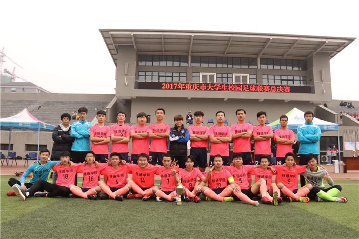 2017年重庆市大学生校园足球联赛总决赛于11月22日—29日在重庆文理学院举行。本次比赛分为甲、乙、丙三组,共57支球队报名参加,其中,男子甲组(普通本科组)共有16支球队,经过七天的激烈争夺,我校男足以小组第二名的身份成功晋级八强,并最终获得男子甲组第七名的优异成绩。