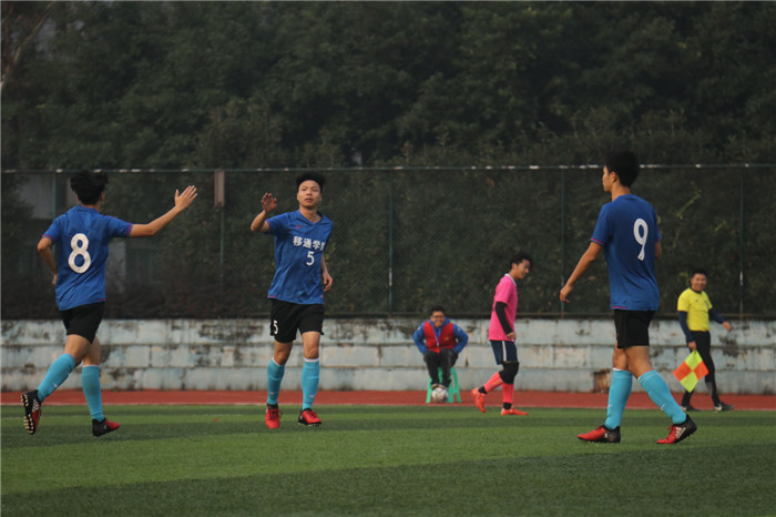 在比赛中我校男足队员不畏强敌,敢打敢拼。在小组赛中经过激烈角逐,通过点球大战和最后一场7:0大胜以小组第二进入八强。