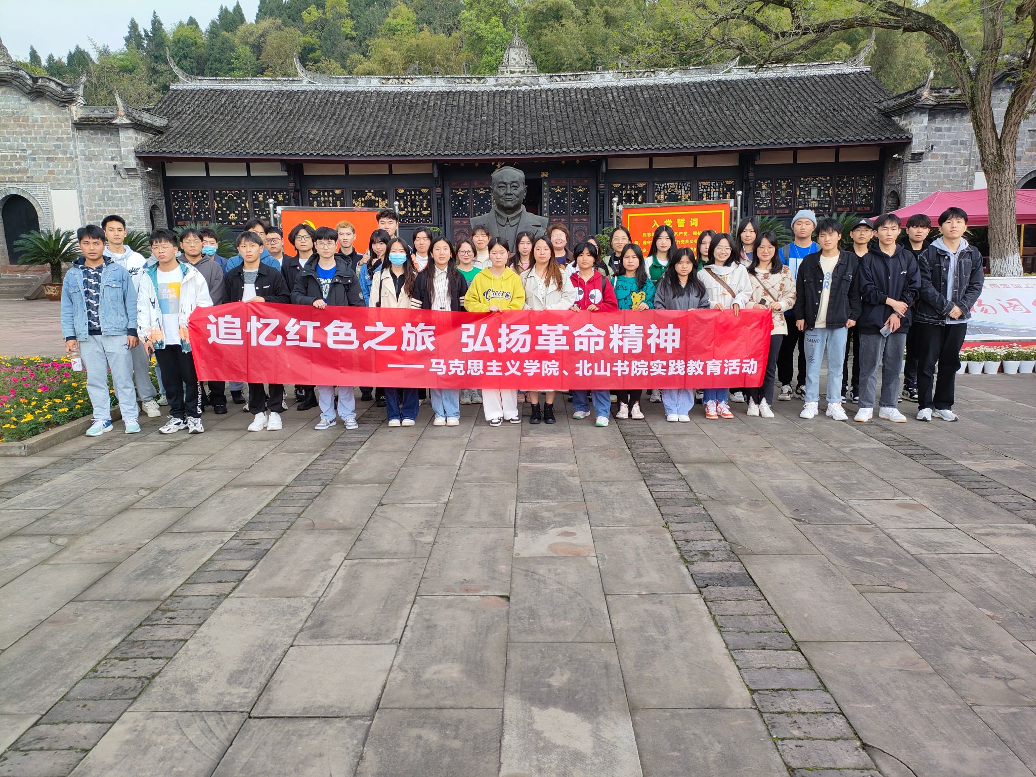 桃花红雨英雄血,碧海丹霞志士心。3月29日下午,伴着灼灼桃花和微微细雨,马克思主义学院联合北山书院,组织师生共计40人赴潼南杨闇公杨尚昆故里共同开展了一次“追忆红色之旅 弘扬革命精神”的爱国主义教育实践活动。