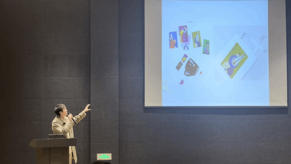 宋老师向与会同学展示数字媒体艺术同学们以自己的角度采集的非物质文化遗产项目素材。分别为合川根雕、川剧、合川豆干制作工艺。他通过各类型文创产品的衍生设计案例,说明三点设计原则--分别是有效挖掘利用文物或项目资源,有效传播文化正能量(润物细无声),以及有效体现产品实用及创新。