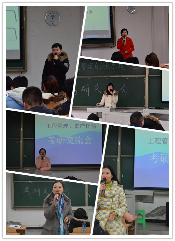 为了让同学们明确学习方向,让对考研感兴趣的同学进一步了解如何进行考研准备,管理工程系于12月13日晚上19:00在5101和5102教室举办了以“吾行吾道,虽远必至”为主题的考研交流会。出席本次交流会的嘉宾有信息管理与信息系统教研室主任苑隆寅老师,工程管理教研室主任周梦娇老师,系部李红艳老师、黎明老师、王哲老师、刘霖老师、耿元芳老师、陈明燕老师、周冬艳老师、宋利利老师等相关专业老师以及管理工程系辅导员杨进老师、王冰倩老师。