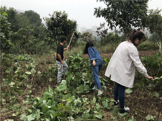 借农具,翻土,搬石头一气呵成。同学们分工合作配合默契,没有农具的便时不时的把翻出来的石头捡到一旁,这次的任务中,但是同学们丝毫没有懈怠之心。