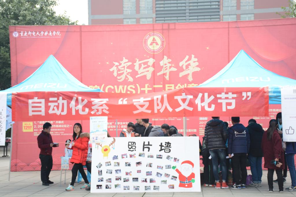 初冬的风拂过校园,树木窸窣之声,此起彼伏。一二教广场却是温暖遍布,沁人心脾。12月15日由重庆邮电大学移通学院自动化系青年志愿者协会主办的“志愿服务专项支队文化节”在一二教广场成功举办。团委志愿服务负责老师、自动化系辅导员老师们来到现场,与同学们一起体验这别样的文化节。