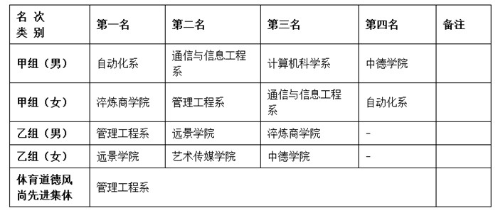 女子组决赛中女子甲组组淬炼商学院和管理工程系对战,淬炼商学院凭借默契的配合和顽强的拼劲,在先丢一局的情况下连扳两局逆转获胜取得女子组冠军。男子组决赛是本次比赛的压轴戏,对阵双方自动化系和通信与信息工程系,男子决赛中,自动化系依靠精准发球和默契的配合始终占据场上主动,最终拿下比赛冠军。比赛结束那一刻场上队员和场下观众都响起了欢呼声,他们出色的表现给在场的同学们带来了一场精彩绝伦的排球比赛。