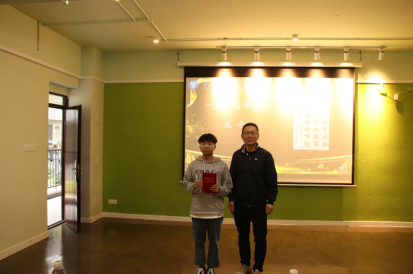 张衍学助理为一等奖获得者龙西同学颁发了荣誉证书及奖杯。