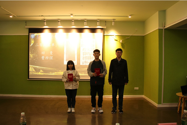 位光辉院长为二等奖获得者曹梓煜、田曼等2名同学颁发了荣誉证书及奖杯。