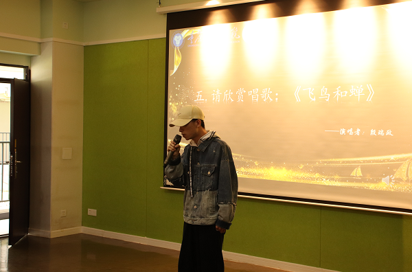 收藏证书后,钓鱼城研究会综合管理部干事殷瑞政为大家带来了《飞鸟与蝉》。在殷瑞政同学动听的歌声中,大家更加期待接下来的奖项会落入谁家。