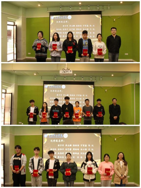 欣赏完精彩的表演后,池开智老师、杜春梅老师和冯懿老师为黄子昂、李玉麟、张淋炫、万家鑫、潘怡帆、彭泽平、任艺蕾、周玲玲、朱以豪、普丽娟、廖兴晶、金容、刘东、朱佳婷、雷子昕、谢琳垚、张标、陈欣、刘红霞、朱燕、代若荟、苏谌维、代凯等23名同学颁发了收藏证书,并合影留念。