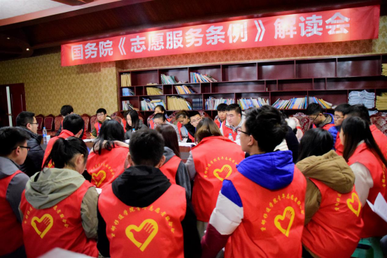 (移通学院青年志愿者认真学习《志愿服务条例》)