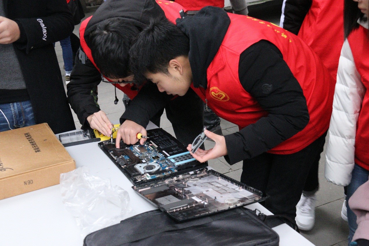 在进社区的调查访问中我们的志愿者发现该社区大多数老人仍然使用的是“老人机”,即便如此,很多老人也仅限于会接电话而不会其它更多的操作,面对新时代的科技产品,他们常常“束手无策”。于是在开设的技术服务区中,他们都纷纷拿出自己的手机向志愿者们寻求帮助,有的还带来了家里的电脑进行简单的系统装换以及除尘等问题。而志愿者们也都耐心的解答在使用智能设备时所遇到的问题,并鼓励他们去接受去体验时代的进步。